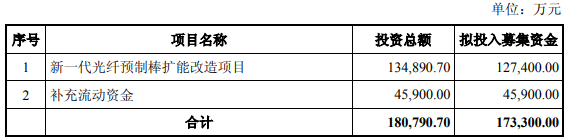 ICCSZ訊 3月15日,亨通光電發(fā)布《公開發(fā)行可轉(zhuǎn)換公司債券募集》公告,擬募集資金17.33億元,用于投資“新一代光纖預(yù)制棒擴(kuò)能改造項(xiàng)目”和補(bǔ)充流動(dòng)資金。全資子公司亨通光導(dǎo)將擔(dān)任項(xiàng)目實(shí)施主體。項(xiàng)目建設(shè)內(nèi)容為擴(kuò)建新一代光纖預(yù)制棒生產(chǎn)線,建成后新增光纖預(yù)制棒產(chǎn)能800噸。