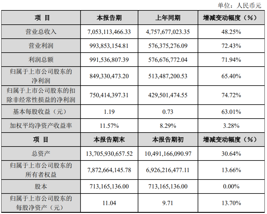 ICC訊 (編輯:Aiur)中際旭創(chuàng)股份有限公司發(fā)布2020年度業(yè)績快報,報告期內(nèi)實現(xiàn)營業(yè)總收入7,053,113,466.33元,同比增長48.25%,歸屬于上市公司股東的凈利潤849,330,473.20元,同比增長65.40%。