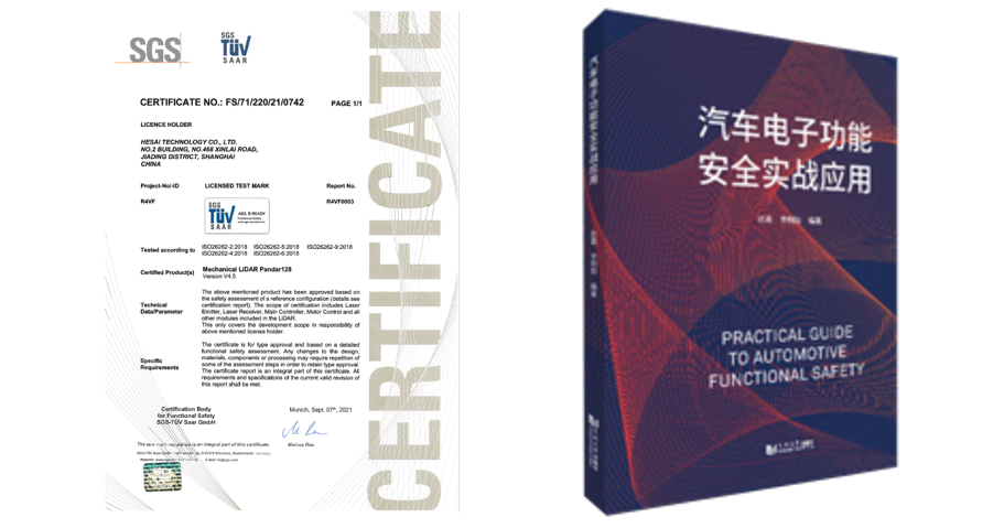 在積極推動(dòng)車載激光雷達(dá)相關(guān)標(biāo)準(zhǔn)制定的同時(shí),禾賽也持續(xù)深耕激光雷達(dá)安全領(lǐng)域,步步先行。在功能安全方面,禾賽推出了全球首款獲得 ISO 26262 ASIL B 功能安全產(chǎn)品認(rèn)證的激光雷達(dá)。為造就這款“持證上崗”的激光雷達(dá)產(chǎn)品,禾賽引入第三方權(quán)威認(rèn)證公司德國 SGS-TüV 對產(chǎn)品進(jìn)行全流程深度考察,經(jīng)過近萬條失效分析、300 多份工作成果和28 個(gè)月的數(shù)輪迭代,實(shí)現(xiàn)了滿足標(biāo)準(zhǔn)要求的安全保障。此外,禾賽還出版了全國首本汽車電子功能安全書籍《汽車電子功能安全實(shí)戰(zhàn)應(yīng)用》,由禾賽安全質(zhì)量工程部總監(jiān)主編、禾賽安全團(tuán)隊(duì)及業(yè)界專家共同編寫。