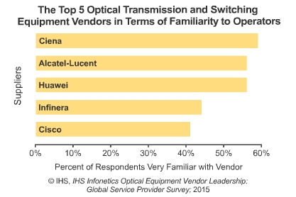 IHS調(diào)查的服務(wù)供應(yīng)商占全球電信資本開支的35%,調(diào)查中提名的設(shè)備商包括ADVA、阿爾卡特朗訊、BTI、Ciena、思科、Coriant、Cyan、ECI、愛(ài)立信、富士通、華為、Infinera、NEC、Transmode和中興。