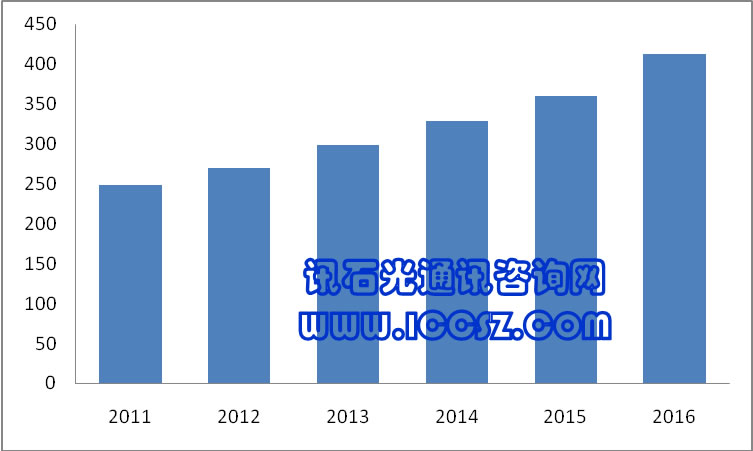 根據(jù)ElectroniCast報(bào)告,2011年全球手持OTDR設(shè)備(專(zhuān)用手持或模塊解決方案)和OTDR模塊消費(fèi)值為2.487億美元。預(yù)計(jì)消費(fèi)值每年會(huì)以10.6%的速度呈現(xiàn)兩位數(shù)增長(zhǎng)態(tài)勢(shì),2016年將達(dá)4.119億美元。未來(lái)五年出貨量將呈現(xiàn)從緩和到強(qiáng)勁的增長(zhǎng)趨勢(shì),這將會(huì)部分抵消平均價(jià)格的下降對(duì)總消費(fèi)值產(chǎn)生的影響。