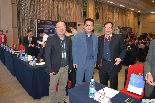 三安光技術(shù)事業(yè)部負(fù)責(zé)人鄭文(左)、三安股份總經(jīng)理林科闖(中)、訊石董事長石明(右)