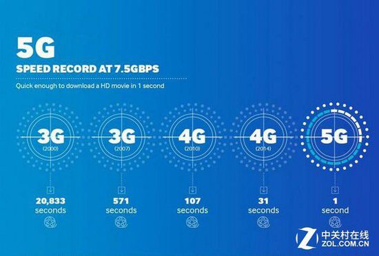 不僅如此,此前還有廠商在5G傳輸測(cè)試中更獲得了7.5Gbps的速度記錄,在此極速下,移動(dòng)終端僅需1秒中即可下載一部高清影片。