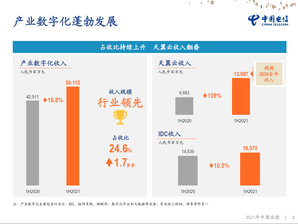 ICC訊 今日,中國(guó)電信公布2021年中期業(yè)績(jī)。