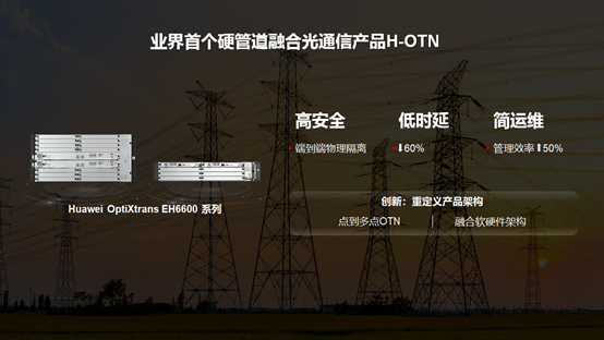 在大會期間,華為發(fā)布了業(yè)界首款支持NHP的光通信產(chǎn)品H-OTN。該產(chǎn)品首次融合了OTN和OLT設(shè)備能力,實現(xiàn)了接入網(wǎng)到廣域網(wǎng)端到端的硬管道,在保障核心業(yè)務(wù)絕對安全的同時,將時延降低60%以上。