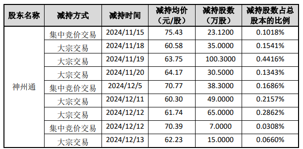 公告指出,公司于2024年10月24日披露了《股東減持股份預披露公告》:持有本公司股份1,536.492萬股(占公司總股本的6.7649%)的股東深圳市神州通投資集團有限公司(簡稱“神州通”)計劃在本公告披露之日起15個交易日后的3個月內(nèi)(即2024.11.15~2025.2.14)以大宗交易或集中競價交易方式減持本公司股份不超過680萬股(占本公司總股本的2.9939%)。