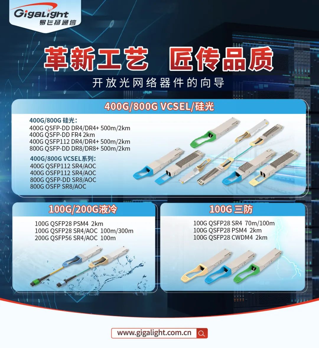 作為開放光網(wǎng)絡(luò)器件的向?qū)В?A href="http://m.partyval.com/site/CN/Search.aspx?page=1&keywords=%e6%98%93%e9%a3%9e%e6%89%ac&column_id=ALL&station=%E5%85%A8%E9%83%A8" target="_blank">易飛揚(yáng)(GIGALIGHT)集有源和無源光器件以及子系統(tǒng)的設(shè)計(jì)、制造和銷售于一體,產(chǎn)品主要是光模塊、硅光模塊、液冷模塊、光無源器件、有源光纜和直連銅纜、相干光通信模塊與OPEN DCI BOX子系統(tǒng)。易飛揚(yáng)重點(diǎn)服務(wù)數(shù)據(jù)中心、5G承載網(wǎng)、城域波分傳輸、超高清廣播視訊等應(yīng)用領(lǐng)域,是一家創(chuàng)新設(shè)計(jì)的高速光互連硬件解決方案商。
