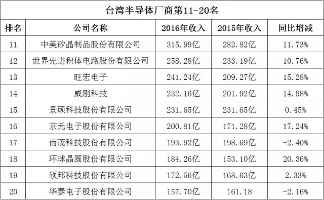 臺灣半導體廠商第11-20名