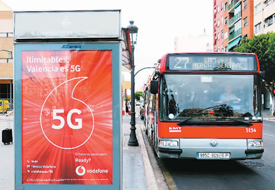 圖為在西班牙東部城市巴倫西亞的一處公交車站拍攝的跨國電信運(yùn)營商沃達(dá)豐5G商用移動(dòng)網(wǎng)絡(luò)的廣告??鐕娦胚\(yùn)營商沃達(dá)豐近日在西班牙開通該國首個(gè)5G商用移動(dòng)網(wǎng)絡(luò),華為是核心供應(yīng)商。