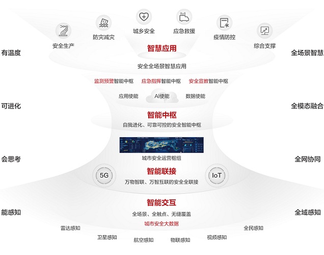智慧應(yīng)用:聚焦安全發(fā)展難題,利用城市安全智能中樞,構(gòu)建安全生產(chǎn)、防災(zāi)減災(zāi)、城鄉(xiāng)安全、應(yīng)急救援、疫情防控、綜合支撐等智慧應(yīng)用,驅(qū)動城市安全發(fā)展全場景智慧落地。
