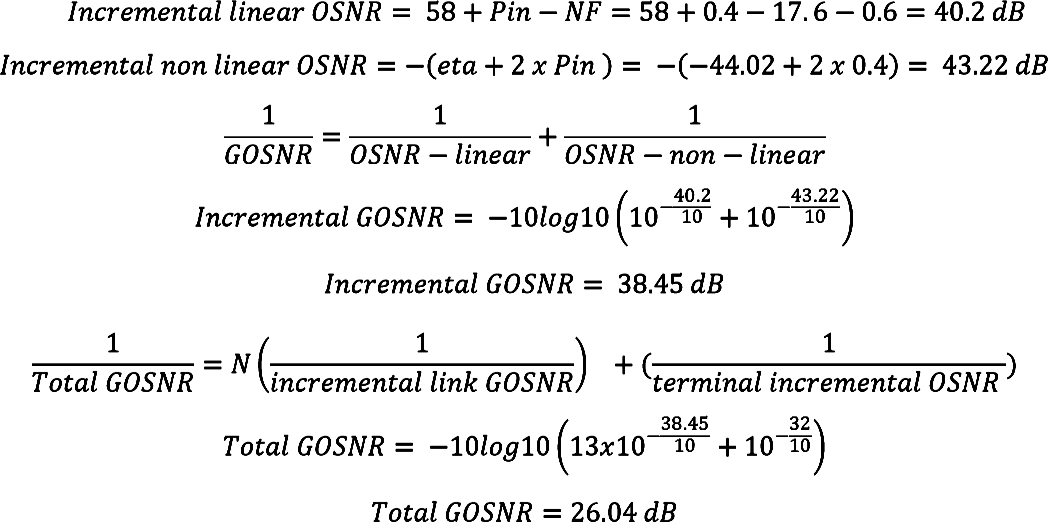 整個(gè)鏈路的OSNR計(jì)算方式如下: