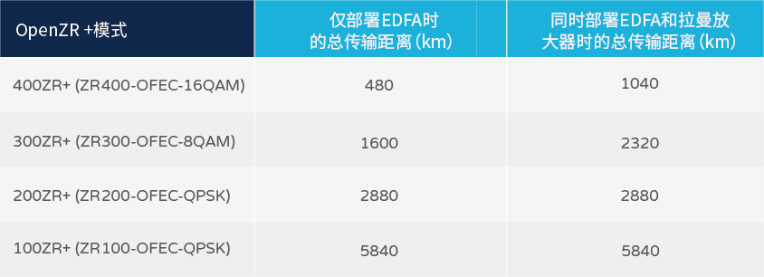 對(duì)于各種OpenZR+模式,我們可以獲得哪些類型的傳輸距離?