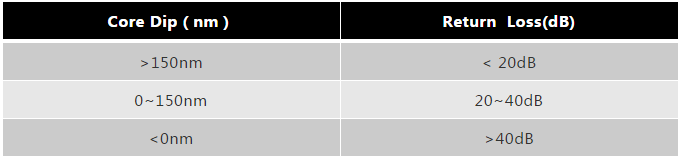 4) Core Dip指標與Return Loss回波損耗的對應關系: