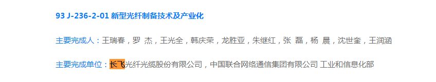 《新型光纖制備技術(shù)及產(chǎn)業(yè)化》主要完成單位:長飛光纖光纜股份有限公司,中國聯(lián)合網(wǎng)絡(luò)通信集團(tuán)有限公司 工業(yè)和信息化部。主要完成人:王瑞春,羅杰,王光全,韓慶榮,龍勝亞,朱繼紅,張磊,楊晨,沈世奎,王潤涵,張方海。