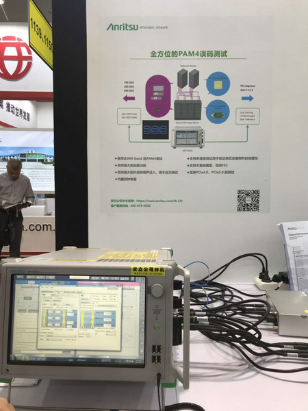 MP2110A 是一款內(nèi)置誤碼率測(cè)試儀 (BERT) 和采樣示波器的一體化測(cè)量?jī)x器,支持光模塊的BER測(cè)量、眼圖模板測(cè)試、眼圖分析等評(píng)估操作。就在本周,MP2110A的采樣示波器上剛升級(jí)了PAM4分析功能,在之前26 Gbaud基礎(chǔ)上引入了53 Gbaud PAM4分析功能。本次展臺(tái)上也專(zhuān)門(mén)準(zhǔn)備了相應(yīng)的實(shí)際演示。