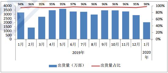 圖4:國內(nèi)智能手機(jī)出貨量及占比