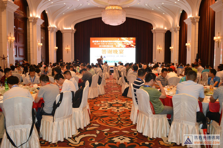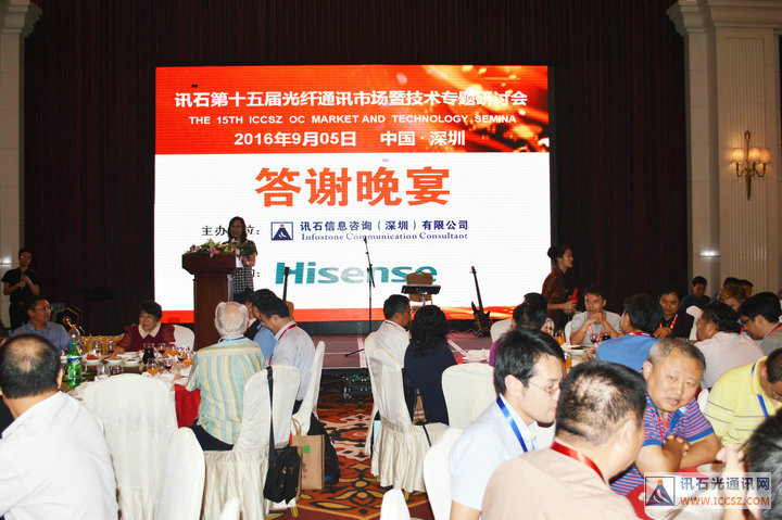ICCSZ訊 2016年9月4-5日,由訊石信息咨詢(深圳)有限公司主辦的訊石第十五屆光纖通訊市場暨技術專題研討會(簡稱“訊石研討會”)在深圳麒麟山莊圓滿舉辦,本屆研討會吸引了160余家企業(yè)、機構的近400人的熱情參與。會議上精彩的主題演講以及論壇話題討論環(huán)節(jié)讓人收獲良多,此外,訊石還為嘉賓們精心籌備了氣氛輕松熱鬧的晚宴活動,恰逢訊石成立十五周年,今年的研討會晚宴可不是一般的熱鬧!