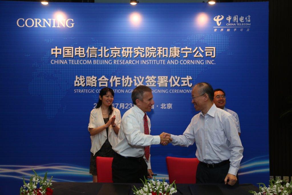 ICCSZ訊 為促進超高速光通信網(wǎng)絡的發(fā)展進行共同創(chuàng)新,康寧公司和中國電信北京研究院近日在北京簽署戰(zhàn)略合作協(xié)議,雙方就共同研究如何推動光通信技術,滿足日益增長的寬帶需求等方面達成共識。