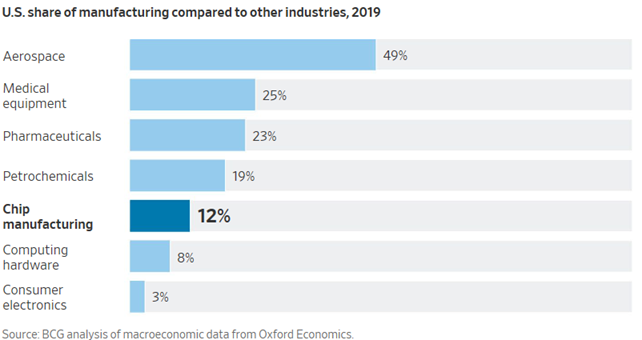 隨著日本、韓國(guó)、中國(guó)大陸和中國(guó)臺(tái)灣的崛起,美國(guó)的制造業(yè)在近幾十年來逐漸離開本土。部分原因在于,亞洲的國(guó)家政府會(huì)為芯片廠商提供補(bǔ)貼激勵(lì)政策,以鼓勵(lì)建造工廠,發(fā)展本土產(chǎn)業(yè)。與此同時(shí),美國(guó)以外的半導(dǎo)體供應(yīng)鏈不斷壯大,以及能夠操作高昂制造設(shè)備的熟練工程師隊(duì)伍不斷擴(kuò)大。