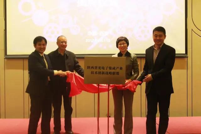 嘉賓發(fā)言結(jié)束后,西安光機所李學(xué)龍副所長、中國標(biāo)準(zhǔn)化研究院王宗齡書記、陜西省科技廳劉占明副巡視員、北京大學(xué)周治平教授共同為聯(lián)盟揭牌。