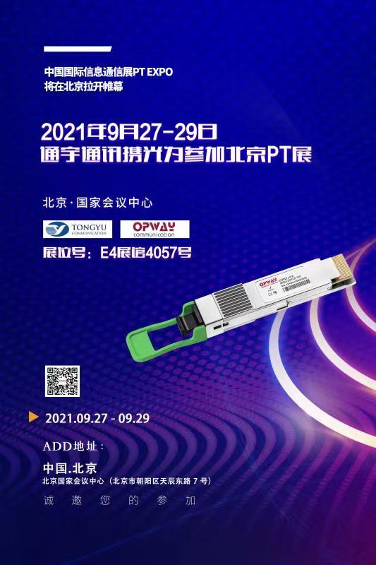 ICC訊 2021年9月27日-29日,由工信部主辦的中國(guó)國(guó)際信息通信展PT EXPO(簡(jiǎn)稱“PT展”)將于北京·國(guó)家會(huì)議中心舉辦。廣東通宇通訊股份有限公司(002792.SZ)攜光為參加此次展會(huì),屆時(shí)將向您展示我們公司最新的研發(fā)成果。