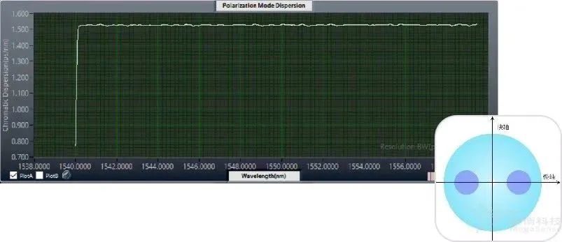 保偏光纖快軸折射率小、光傳輸速度快,慢軸折射率大、光傳輸速度慢。OCI-V精確測(cè)量PMD對(duì)于評(píng)估光纖制備、光器件制造及光通信鏈路非常有意義。