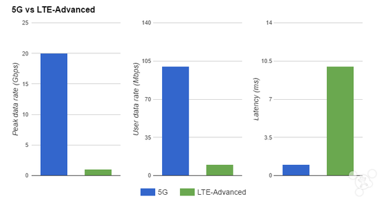 若是將這些規(guī)范縮減到個人用戶的范圍,規(guī)范要求最低下行速度至少達(dá)到100Mbps,同時上行速度也至少達(dá)到50Mbps。有的人可能會說,4G LTE-A網(wǎng)絡(luò)的峰值速度已經(jīng)達(dá)到這個數(shù)字了,但其實實際并不是那么回事,還要考慮基礎(chǔ)設(shè)施配置、信號覆蓋范圍和人群,而5G是硬性標(biāo)準(zhǔn),這代表著相當(dāng)顯著的提升,真實情況會比“最低標(biāo)準(zhǔn)”快很多。