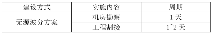 利舊原有纖芯,可上站安裝無源波分或者單纖雙向光模塊,無源波分只需1芯,單纖雙向光模塊需要3芯, 2~3天可完成割接開通(見表3)。
