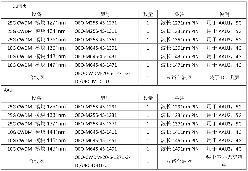 6.2 4G/5G前傳混合傳輸無源波分方案