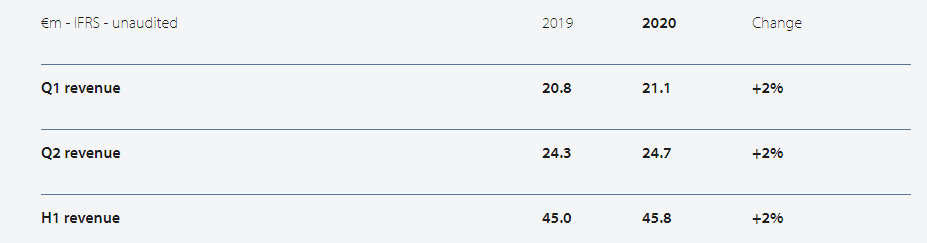 2020年第二季度,EKINOPS的合并收入為2470萬歐元,增長 1.6%。