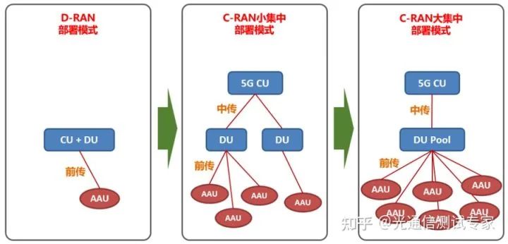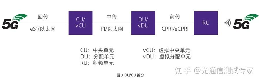 ③劃分基帶功能并創(chuàng)建稱為分配單元(DU)和集中單元(CU)的新節(jié)點(diǎn)實(shí)體,以根據(jù)應(yīng)用的需要優(yōu)化傳輸功能。