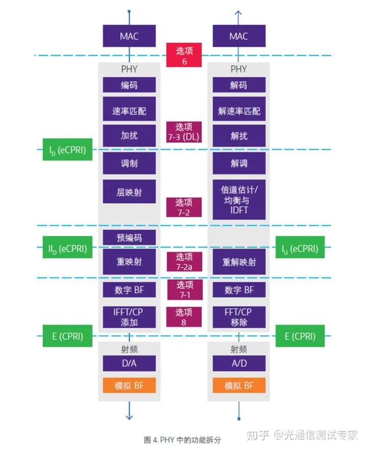 在討論光纖回傳、中傳和前傳拓?fù)浣Y(jié)構(gòu)之前,我們可以回顧一下5G前傳接口的發(fā)展。eCPRI 技術(shù)以物理層 (PHY) 組件的功能拆分為基礎(chǔ)。