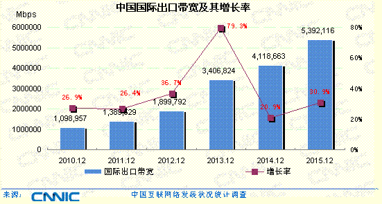作為與用戶上網(wǎng)體驗息息相關(guān)的國際出口帶寬,在過去的一年中增長了30.9%;其實,從2010年以來,我國的國際出口帶寬一直保持著20%以上的增長,其中在2013年,增長率更是達到了79.33%。