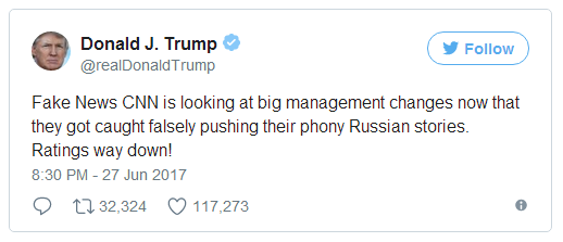 眾所周知,特朗普曾在Twitter(21.88, 0.00, 0.00%)上多次批評過CNN,抨擊CNN做“假新聞”。