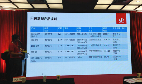 針對(duì)數(shù)據(jù)中心,華工正源數(shù)據(jù)中心項(xiàng)目經(jīng)理王三引用Infonetics、Ovum等報(bào)告指出,數(shù)通市場(chǎng)將是未來(lái)幾年光器件廠商的主戰(zhàn)場(chǎng)。華工正源很早就規(guī)劃有數(shù)據(jù)中心業(yè)務(wù),經(jīng)過(guò)幾年的潛心研發(fā),目前已經(jīng)在40G SR4、100G SR4、25G SR、10G 1300nm VCSEL等產(chǎn)品上取得突破,并對(duì)100G QSFP 28系列乃至400G產(chǎn)品進(jìn)行了規(guī)劃。
