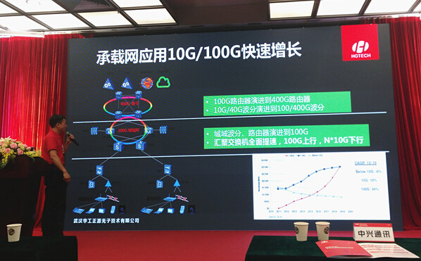 傳輸則是華工正源的傳統(tǒng)優(yōu)勢(shì)產(chǎn)品,也是今年上半年業(yè)績(jī)?cè)鲩L(zhǎng)的一大動(dòng)力。華工正源高速產(chǎn)品線經(jīng)理韓勇表示,公司目前擁有全系列10G產(chǎn)品系列,可滿足多應(yīng)用場(chǎng)景的需求;100G也開發(fā)出了多種類別產(chǎn)品,并在核心的激光器、探測(cè)器等層面做了深入研究,以實(shí)現(xiàn)產(chǎn)品的更低成本、更低功耗和更好散熱。