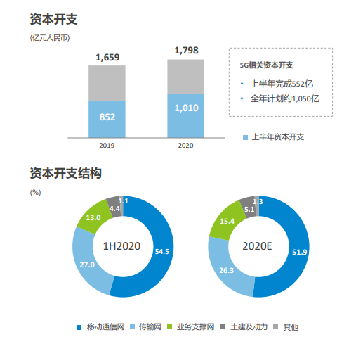 今年上半年,中國移動積極推進5G建設(shè),以5G為代表的新型基礎(chǔ)設(shè)施建設(shè)正引領(lǐng)中國經(jīng)濟社會發(fā)展的數(shù)字轉(zhuǎn)型、智能升級和融合創(chuàng)新。財報顯示,上半年中國移動5G相關(guān)資本開支552億元,全年計劃約1050億元。