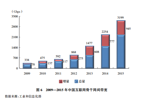 報告指出,中國骨干網(wǎng)容量大幅提升,中繼光纜長度增至近100萬公里,單端口帶寬能力從Kbps提升至100Gbps,骨干網(wǎng)帶寬已超100Tbps。骨干網(wǎng)和城域網(wǎng)不斷扁平化,從星形向網(wǎng)狀網(wǎng)演進,大幅提升了骨干網(wǎng)絡(luò)的疏導(dǎo)效率和用戶服務(wù)能力。網(wǎng)絡(luò)互聯(lián)互通部署初見成效,截至2014年年末,中國已與周邊14個國家和地區(qū)實現(xiàn)跨境光纜連接,網(wǎng)絡(luò)通達亞、美、歐、非、澳等全球各方向,海外網(wǎng)絡(luò)服務(wù)提供點(POP)建設(shè)規(guī)模已達到72個。國際互聯(lián)網(wǎng)出入口帶寬以年均15%的速率增長,2015年6月達到4607Gbps。