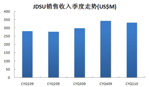 JDSU今天公布了截至2010年4月3日的第三財季財報,2010財年Q3銷售收入為3.323億美元,