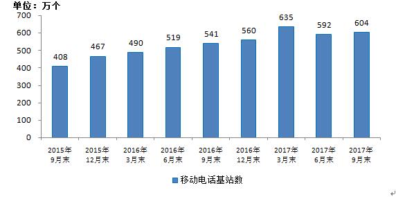 2015-2017年9月移動(dòng)電話基站數(shù)發(fā)展情況