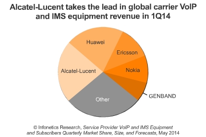 *2014年一季度該市場(chǎng)的領(lǐng)導(dǎo)廠商為阿朗,阿朗主要受益于北美地區(qū)核心IMS和語音應(yīng)用服務(wù)器市場(chǎng)的強(qiáng)勁增長(zhǎng)。