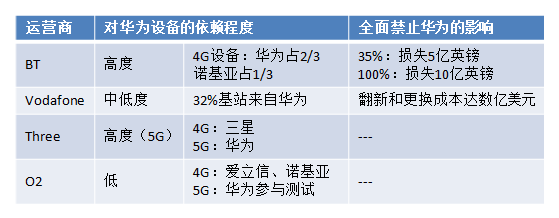 英國(guó)四家運(yùn)營(yíng)商對(duì)華為設(shè)備的依賴程度