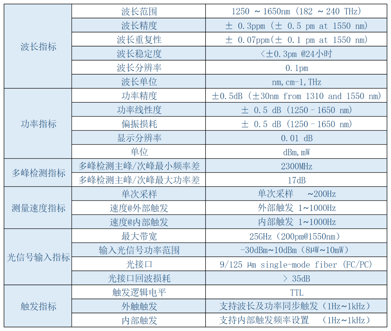 · 0.1pm/12.5MHz 波長分辨率;?全固態(tài)結(jié)構(gòu),非機(jī)械運(yùn)動部件光學(xué)設(shè)計(jì),測試速度快:1kHz 刷新速率,適合瞬態(tài)波長和功率測試,大大降低 iTLA, DBR 以及相干通信模塊測試時(shí)間;?支持寬帶模式,可以測試 96Gbaud 調(diào)制光信號精確波長測量;?支持漂移測試和最大最小值顯示;?支持外部或者內(nèi)部觸發(fā),使用FPGA驅(qū)動波長/功率同步采集,可以配合 SMU 精密源表進(jìn)行同步測試,確保采集信號準(zhǔn)確無誤;?使用SCPI標(biāo)準(zhǔn)指令兼容Keysight/Yokogawa等廠家相應(yīng)的指令集;