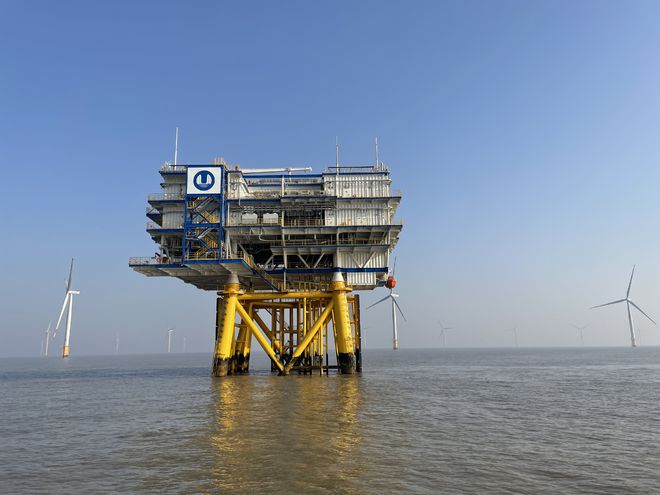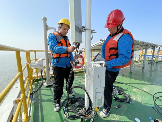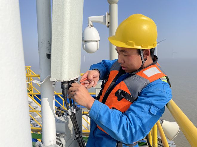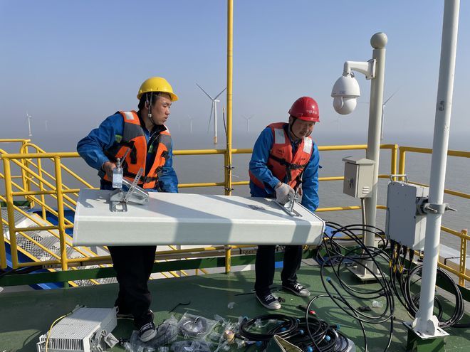 除了創(chuàng)新實(shí)現(xiàn)超遠(yuǎn)距離信號(hào)傳輸,南通移動(dòng)還在如東開(kāi)通了全省首個(gè)海上風(fēng)機(jī)5G基站。吳維國(guó)介紹,之所以采用風(fēng)機(jī)基站+海上升壓站平臺(tái)基站相結(jié)合的布點(diǎn)方式,關(guān)鍵在于海上風(fēng)電場(chǎng)海纜一般直接接入升壓站,因此,在海上升壓站平臺(tái)安裝5G基站,能實(shí)現(xiàn)即時(shí)開(kāi)通,更有利于資源的節(jié)約集約化利用,但同時(shí),升壓站平臺(tái)高度普遍在30米左右,一定程度上限制了信號(hào)的覆蓋范圍,此時(shí),就需要風(fēng)機(jī)基站作為補(bǔ)充,通過(guò)上下疊加形成互補(bǔ),有效保障5G信號(hào)強(qiáng)度高,覆蓋范圍廣。