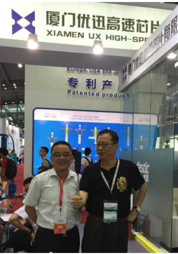 Iccsz訊(編輯:Aiur)9月7日,熱鬧紛繁的CIOE 2016進(jìn)入到第二天。訊石團(tuán)隊(duì)有幸參訪了廈門優(yōu)迅高速芯片有限公司(下稱優(yōu)迅)展廳。展位號(hào)是1B53,歡迎光通訊同仁蒞臨指導(dǎo)與交流。作為多年的老朋友,優(yōu)迅董事長柯總及其他領(lǐng)導(dǎo)接待了訊石團(tuán)隊(duì)的參訪,在訊石石總與柯總親切的交談中,訊石也見識(shí)到優(yōu)迅在國產(chǎn)光通訊芯片的最新成果與貢獻(xiàn)。