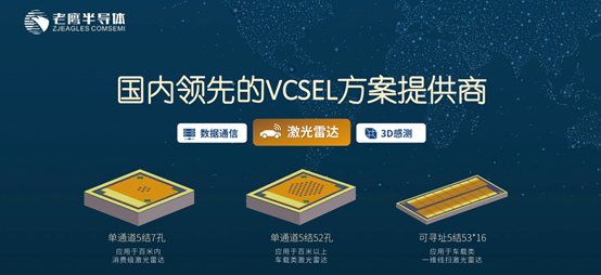 激光雷達(dá)的上車熱也倒逼上游器件廠商不斷打磨產(chǎn)品、精進(jìn)技術(shù)。在激光雷達(dá)上最關(guān)鍵的發(fā)射端,VCSEL(垂直腔面激光器)以尺寸小、量產(chǎn)成本低、溫漂低、易于二維集成等優(yōu)勢,成為光源的不二之選。老鷹半導(dǎo)體目前已布局了多款激光雷達(dá)VCSEL芯片,從3瓦到400瓦,從單通道到可尋址,覆蓋車載類、工業(yè)類及消費(fèi)類多種應(yīng)用場景。