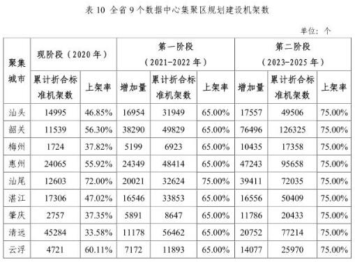 ICC訊 日前,坊間傳出了廣東省工業(yè)和信息化廳印發(fā)的廣東省5G基站和數(shù)據(jù)中心總體布局規(guī)劃(2021-2025 年)的相關(guān)資料。以下是數(shù)據(jù)中心相關(guān)的重點信息:
