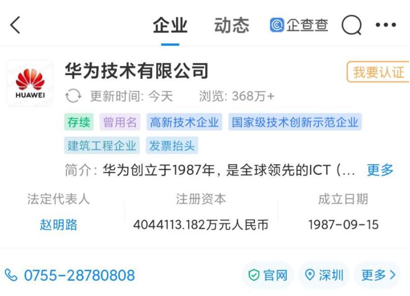 ICC訊 12月23日,華為技術有限公司發(fā)生工商變更,注冊資本從約 403.41 億元人民幣增至 404.41 億元人民幣,增加 1 億元人民幣。