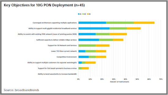 ICCSZ訊(編譯:Nina)Broadbandtrends(BBT)最近對(duì)領(lǐng)先的寬帶運(yùn)營商進(jìn)行了一項(xiàng)調(diào)查,了解他們?cè)诰W(wǎng)絡(luò)中部署10G PON技術(shù)的計(jì)劃。10G PON可以提供更高帶寬和對(duì)稱服務(wù),同時(shí)滿足新興5G網(wǎng)絡(luò)的帶寬、延遲和致密化要求。