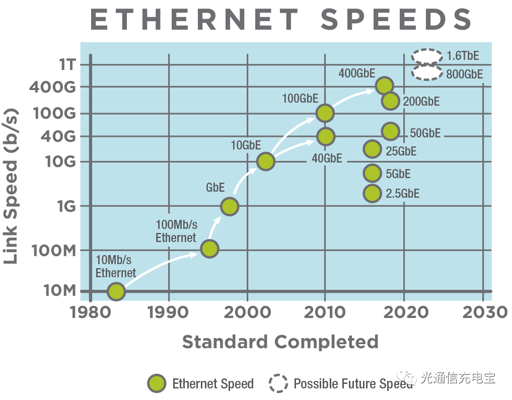 圖2. 以太網(wǎng)速率標(biāo)準(zhǔn)演進(jìn)趨勢(shì)